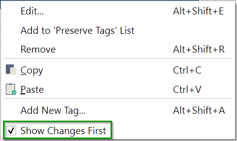 Par défaut, Picard affichera les tags configurés ici en premier dans la liste. Si vous faites un clic droit sur l’une des balises dans le panneau des métadonnées, et que vous activez dans le menu contextuel, les balises avec des changements seront toujours affichées en premier dans la liste, suivies des autres balises principales et des autres balises.